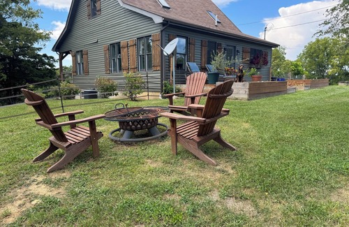 Hunting and wildlife retreat. With over 30 wooded acres for you and your family to explore, this cozy retreat features 1 king bed and 2 full beds, perfect for a peaceful getaway. Or sporting adventure. With amenities like heating, AC, and a washing machine, guests can relax and unwind. The 2 bathrooms come equipped with a hairdryer and bathtub for added convenience. This property features over 2 miles of trails for your family and pets to explore. Or enjoy the evenings sitting by the fire pit and watch the beautiful sunsets. This cabin is 15 min from Blue Lick Battleground State Park, 10 minutes from Wendt’s Wildlife Adventure amd 15 min from Lake Carnaco. Bring your 4 wheeler too, and if kayaking is your thing, it is only 10 minutes to the nearest launch. There are 4 hunting blinds, maintained weekly, set over corn and mineral licks. Fenced dog run provided.