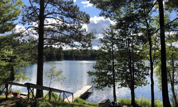 The cabin offers guests a serene, quiet, private home to enjoy no matter the season. This home is wonderfully equipped to provide families with children of all ages with the conveniences necessary for an enjoyable vacation. Guests with small children will be happy to know that 2 pack n plays, boosters seats for the dining table, bibs, children's utensils, dishes, and games/art supplies are available for your use. Older children and adults alike will enjoy the beauty of the surrounding area - a perfect place for a nature walk, bonfire, swim, fishing, kayaking and row boat in the no wake lake. The area boasts many snowmobile trails, nature trails, as well as ice fishing.