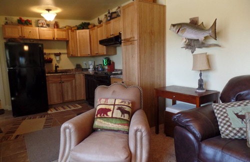 The design of the cabin's interior is a mini-lodge theme, while the exterior resembles an old boat/bait house! We are centrally located in the town of Grove, OK where all the action is! The cabin is very close to Wolf Creek and Honey Creek Marinas, tournament locations, restaurants, shopping and lots of attractions. Our personal home is located on this same property.