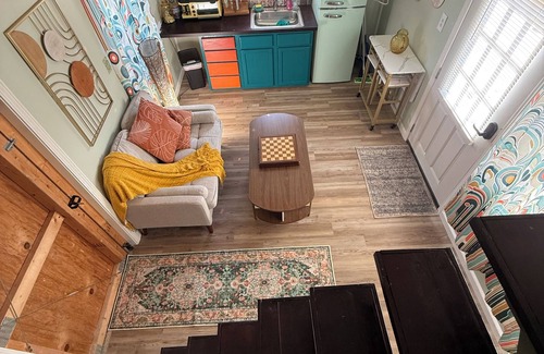 Please note the floating stairs in photos and the low ceiling in the loft area.