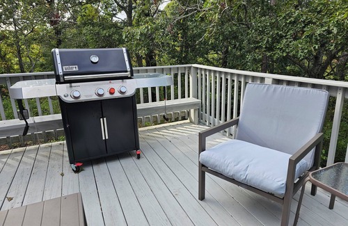 Our Cottage is conveniently located on Depot Pond (with pond access) and next to the Cape Cod Rail Bike Trail. Both the kitchen and bathroom are newly renovated. All windows have been replaced. There is a new Mini-Split heating/AC system installed for this season to add to your comfort. Our large deck overlooks the pond and is the perfect spot to relax and watch the sunset or enjoy coffee in the morning. There are 2 bedrooms with 3 beds (2 twin beds and one queen) to comfortably sleep 4 people. The cottage is fully furnished inside and includes a table and chairs on the deck. New in 2023 is a Weber Gemini gas grill. There is direct pond access to Depot Pond through the backyard. There is high-speed WiFi throughout the cottage. The location is close to beaches on Great Pond (freshwater), Cape Cod Bay, and the Atlantic Ocean. There are many great restaurants within a few miles of the cottage.
