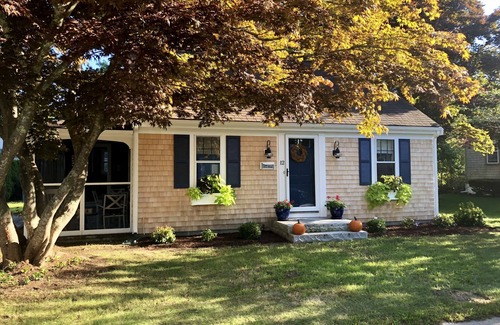 Enjoy all that Mattapoisett has to offer - a charming New England seaside town without the hassle of Cape traffic. A charming seaside Cape, this rare Village rental, is full of color and comfort. This rental, ideal for a couple or small family, is half a mile from Mattapoisett Town Beach and just 3 blocks north of the town wharf and gazebo. You can easily walk to the waterfront, Town Wharf General Store and restaurants like The Inn on Shipyard Park, The Slip, Tastebuds, Nick’s Pizza and Ying Dynasty. Center School playground, tennis/basketball courts and the town library are a quick walk away. This Cape sleeps 5 comfortably. It has 2 bedrooms downstairs (queen, twin) and a third bedroom upstairs (queen). The small single bed room also has desk for a work space and a washer and dryer for convenient laundry on your vacation. A screened in porch provides a perfect place to enjoy meals or quiet time outside.