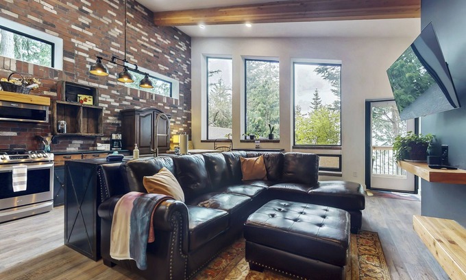Wake up to views of the water from your deck and enjoy your morning coffee on the private deck while eagles soar overhead. At night, fall asleep under the stars, visible right from your bedroom window. Inside, you’ll find a cozy, thoughtfully furnished space with radiant floor heating, a chef’s kitchen with a gas stovetop, and a comfortable living area perfect for relaxing after a day of adventure.
