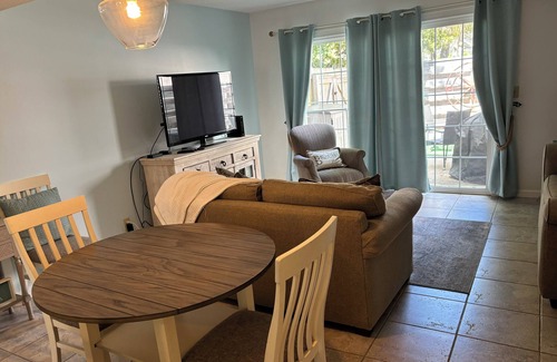 Location! Location! Location This condo is walking distance to the pier/village. Downstairs has a half bath, fully stocked kitchen with a washer/dryer. Living room and dining area have an open concept . Private Outdoor patio with a charcoal grill. Two bedrooms and a full bath located upstairs. Each bedroom has a queen bed. The condo comes with WiFi and HDTV in the living room. Beach Chairs are provided. Accessing the condo is easy as we use coded locks, No keys are necessary. We simply message you the code before check in. Kitchen comes with k-cup and a regular coffee maker.