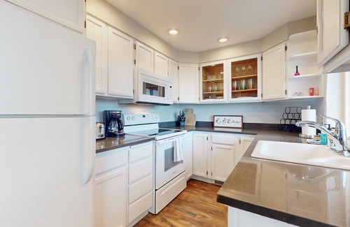 Inside, this home features lots of natural light, stylish furnishings, and that same gorgeous view will make you feel at home immediately. Entertainment options include free high-speed WiFi, a streaming-capable TV, and board games. Plus, the chef will love the well-equipped kitchen to whip up tasty meals and snacks with ease, and there’s room for everyone at the window-front dining table.