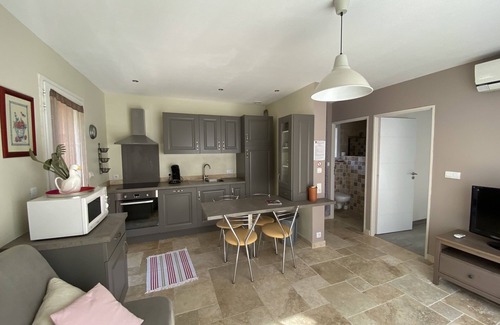 Charming single storey gite, entirely independent of 35m2 and enclosed for rent in a green setting and charming property in the countryside. At the foot of the hills, near Toulon and Hyères and the beaches (access 20 minutes by motorway). Ideal for lovers of nature and hiking (GR51). Maximum capacity 4 people, ideal for 2 people or a couple, fully furnished: an independent air-conditioned bedroom with 140 x 190 bed and an air-conditioned living room with double sofa bed (pillows, bed covers and duvets provided). A fully equipped kitchen in the living room: dishes, dishwasher, oven, microwave, fridge, washing machine, hair dryer. Air conditioning, television, internet access. Bathroom with spacious Italian shower. Terrace and garden, outdoor table and chairs, electric barbecue, parasol.