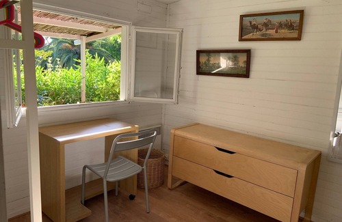 The studio is about 25 m2 and features a separate bedroom, cooking and dining area - Enjoy the patio and your private front yard for outdoor dining. Barbecue provided. The pool is 9 x4 and right in front of your windows - It is accessible from 9 am until 6 pm. The owners and 2 other guest houses share the pool and garden.