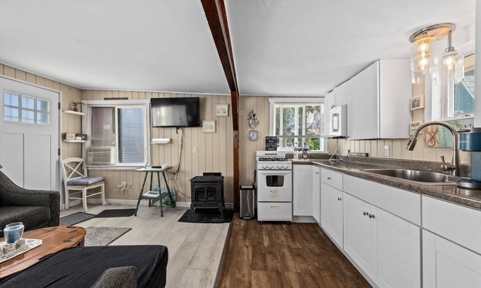 Quaint one bedroom beach cottage located 4 houses down from an association beach in the Breakwater Village community of Narragansett. It features a fully stocked eat-in kitchen with an open concept living room. The living area is furnished with a pull out sleep sofa for guests (linens provided upon request) as well as a flat-screen TV for your entertainment. Private bedroom hosts a queen-sized bed and A/C for comfort. Rinse off after a long day at the beach in outdoor shower. Under 10 minutes to Scarborough and Narragansett Beach!