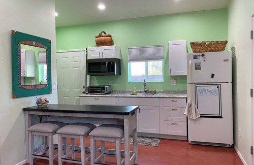 Discover the beauty of Tucson from this fabulous cottage. The cozy studio home features a comfortable queen bed, perfect for a good night's sleep. The house has a kitchenette including an air fryer,induction burner, coffee pot and full size refrigerator.Relax on the patio and enjoy the beautiful Arizona climate. With AC to keep you cool and heat to keep you warm, this brilliant property is the ideal retreat for guests looking to unwind. It's easy to see why you'll be able to unwind at our place.