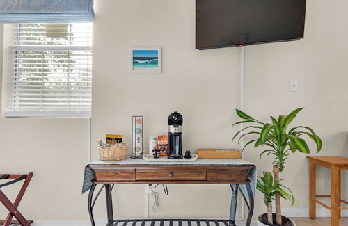 Stay comfortably in Pensacola at this 1-bedroom cottage. The cozy bedroom features a queen bed, perfect for a good night's sleep. Enjoy the convenience of amenities like WiFi, heating, and an iron. The bathroom offers a hairdryer and a refreshing shower. Plus, there's an additional seating area with room for an air mattress, if needed. You're sure to make fantastic memories with a stay at our place.