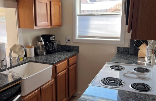 Please note: there is one parking spot. If you have a vehicle larger than a standard SUV (like a Suburban or pick up truck, you may have trouble fitting and need to use street parking on a side street). This home is located close to the street and while it doesn't get noisy traffic you may hear passing cars sometimes.