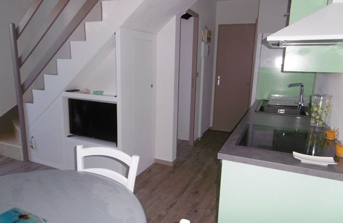 Comfortable semi-detached house in a residence - Sleeps 4/6 - Approximately 32 m². The ground floor comprises a living/dining room with a fitted and equipped kitchenette, a cabin bedroom with a double bed, and a toilet. Upstairs, a cabin bedroom with two single beds, a mezzanine with a sofa bed and a television, and a shower room. Washing machine, dishwasher, oven, microwave, freezer, and flat-screen television are also available. Enclosed garden. Garden furniture, two sun loungers, and a portable barbecue. Dogs are welcome with the owners' agreement. Parking is available in the residence. A cleaning fee of €87 is available. Optional and non-included services, to be reserved 1 month prior to arrival and subject to availability: