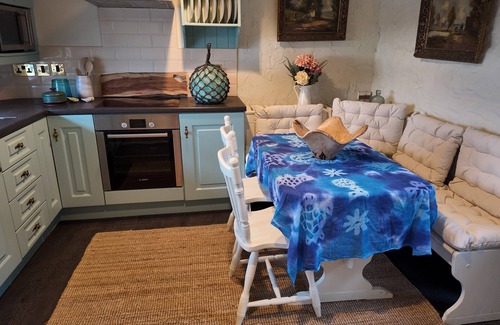 Discover the cozy charm of the Captain’s Nest, a historic famine cottage perched above Bunbeg Harbor with breathtaking views of the Atlantic Ocean. This lovingly restored Irish stone cottage offers an intimate retreat, perfect for couples or small groups. Enjoy a fully fitted kitchen, a snug sitting room with a crackling fire, and a serene garden with an outdoor firepit, all overlooking the picturesque harbor below.