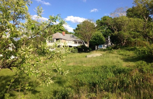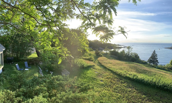 One of the most beautiful hidden gems of the New England coast, the estate has been in our family since the 1860s, and is dotted with old mansions and other houses (about 20 in total), all still belonging to descendants of the original owner, who was a state governor and Civil War general. It comprises fifty-five rolling acres of meadows, forest, marshgrass and rocky granite shoreline, with a white-sand crescent beach, a silvery flat mica beach, a granite swimming pier, a lily pond, and a wild peninsula where you can fish for striped bass or just contemplate the waves. It's excellent for kayaking (bring your own or rent in nearby Rockport), and also has two tennis courts and a playground, all overlooking the sea. It's a small paradise for nature lovers, from the tidal pools out on the rocks to the incredible variety of avian visitors, including snowy egrets, belted kingfishers, and occasional bald eagles. Spring 2022 even brought a whale sighting, visible from the living room & front lawn of Little Driftwood!