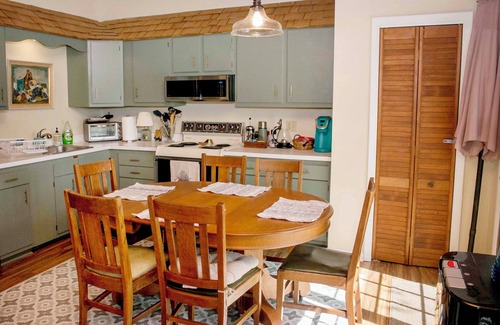 Sunrise Cottage is a charming cottage on Waneta Lake's west side. Enter the home and walk into a large open living area. You will notice right away the large doors and windows offering a beautiful view from the living room and kitchen. Look to the left and note the first bedroom on the left offering 2 twin beds. Wander down the hall and you come to the second bedroom featuring a cozy queen-size bed and dresser. Just a bit further down the hall is the 3rd bedroom, offering a queen-size bed, dresser, and a 1/2 bathroom. At the end of the hallway is the full bathroom offering a shower, commode, and sink. The recent refresh in the kitchen offers a bright and well-equipped room to create delicious food and memories for the whole group. The abundance of vegetable stands in season offers a wide array of fresh food to prepare. The group chef will enjoy the beautiful views offered in this space. Easy access to a sitting area on the large deck makes for a perfect place to enjoy your meal along with that perfect bottle of Finger Lakes wine to accompany your meal. The real star of the show is the idyllic deck where you can witness the majestic sunrises with that perfect cup of morning coffee! (or a glass of Finger Lakes Wine, it is vacation after all!) Put your feet up and enjoy the gas fire pit and watch the boats and kayaks go by! Just off the deck is the perfect propane grill for that summertime BBQ at the lake. Plenty of outdoor seating is available for your enjoyment. When driving in you cannot help but notice the perfect level yard to play catch or outdoor games. For the thrill seeker in the group, there is a newly installed easy-launch system in place to help you get the kayaks in the water. The newly installed dock is the perfect place to keep your boat and the convenience of having the boat launch a couple of miles away is ideal. Located in the home you will notice a Primo water system for drinking water. We do provide 5 gallons of water per reservation. This lake house offers a portable air conditioning unit in the common areas and a large ceiling fan and tall ceilings to keep the home comfortable during the warmer months.