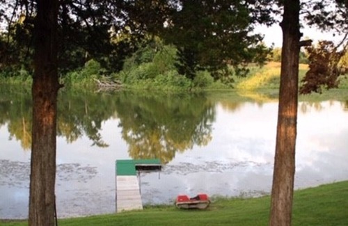 This cozy and inviting cabin offers you a relaxing, serene, and tranquil setting. Inside you will enjoy a charming and comfortable, well-kept cabin with all the amenities that you need. During your stay you will see nature at its finest. Enjoy a drink on the large deck overlooking the picturesque landscape as well as the lake. If you enjoy fishing then this stocked lake is the place for you. Feel free to fish on the bank or the dock. This cabin is part of the original homestead that was established in 1855 by Valentine Kimber. It is located less than 10 minutes from interstate 57 and local winery trails.