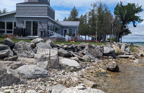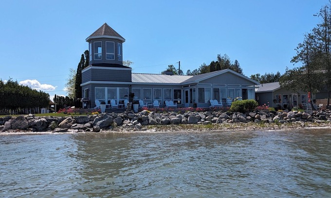Charming cottage with amazing views on the St Mary's River in De Tour Village . Close up views of the Great Lakes Freighters and Cruise Ships. Relax on the long front deck or cozy up to a fire over looking the Islands, Enjoy some of the best fishing in North America on the river, We offer new beds & bedding, a fully stocked kitchen, laundry facilities and everything you need in your home away from home. WiFi is included.