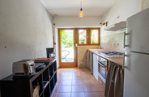 Unfenced grounds, private courtyard with parking space. A covered terrace offers a warm atmosphere with lighting effects and garlands for your summer evenings or afternoons spent reading in the cool garden.