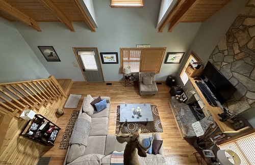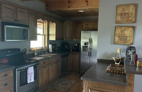 The perfect mountain getaway awaits in this non-traditional mountain cabin. Each of the bedrooms boasts a cozy, king-size bed and television perfect for binging your favorite shows on lazy days. Or is being in nature more your style? Take a walk through the neighborhood where you’ll find gorgeous mountain views, an Indian cave, and gentle waterfalls leading to the New River. Enjoy your morning coffee or evening wine in your rocking chair on the wrap-around porch.