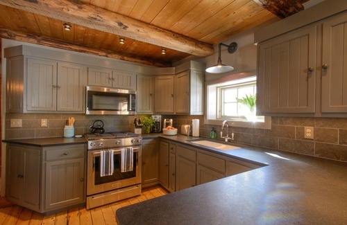 In winter you can relax by the fireplace or in the private back-yard hot tub. In spring, summer, and fall you can lounge and cook outside on one of two sunny and private south-facing back decks (upper and lower) or on the friendly front porch. We've found it to be an ideal vacation home in any season.