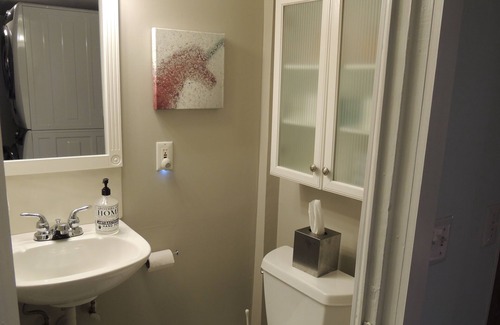Beautiful and unique property situated walking distance to shops, restaurants, the canal and river as well as downtown Lambertville, New Hope and other attractions. The suite is the first floor of the home that has been totally renovated but retains original stone walls, with private entrance, queen bed, private bath (shower only), cozy reading nook with chaise lounge, dining table and kitchenette. The home is nestled on a private road surrounded by woods and nature, yet close to it all. Here you have all of the conveniences of modern living in a warm and charming setting which makes for a perfect getaway and retreat.