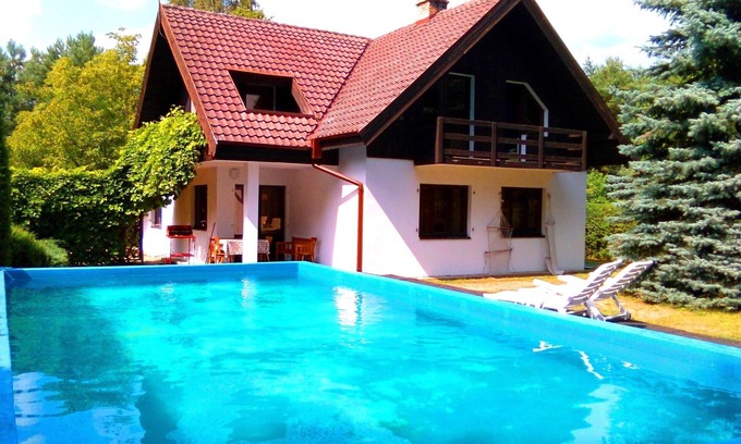 The all-year house is surrounded by lakes, forests and farmland. It is situated in the western part of Wielkopolska (about 80 km west of Poznań), All which is one of the cleanest regions of the country. The house is a perfect location for those enjoying peace and quiet. It offers a private sauna and swimming pool.