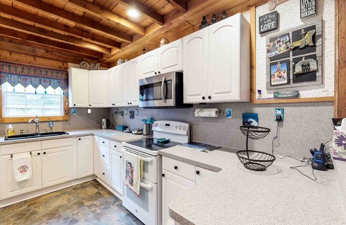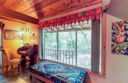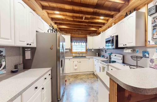 After a day of fun or just peacefully lounging in the hammock, tune into a movie marathon on the living area's large TV, or practice your culinary skills in the full kitchen. Whimsical and quaint, you'll never fail to feel at home while inside this sweet abode. Clean your swimsuit from a dip in the lake in the private washer/dryer. And rest your head come nightfall with the central air-conditioning keeping you cool and comfortable.