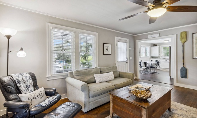 Nestled in a prime, golf cart-friendly downtown area, this home is just steps from the scenic St. Marys waterfront, where you can enjoy local dining, boutique shopping, and leisurely walks. The nearby riverfront park features playgrounds, swings, benches, and kayak rentals for outdoor fun. It's the perfect spot for downtown festivals, and outdoor enthusiasts can bring their boat, with nearby access to boat ramps, kayak launches, and floating docks. Explore local golf courses or take a ferry to Cumberland Island. Book now to experience the charm of St. Marys, GA.