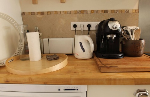 Our apartment is located in the historic heart of Bonnieux, one of the most beautiful villages in the Luberon. It is in a stone building of the eighteenth century that we renovated in the rules of art with natural materials such as wood and natural stone. Located in a pedestrian street caladée just below the old church of the twelfth century, it combines peace and comfort. It has a beautiful sunny garden terrace of 20 m2. This beautiful apartment of 60 m2 consists of two trays of 30 m2 each. It will allow you to enjoy both village life and a pleasant living space. Ideal for two people (maximum 4 using the sofa bed) is carefully decorated in a sober and elegant Provencal style. On the ground floor you find the kitchen with a dining area and a seating area invites you to rest. Upstairs you will find an open room overlooking the old church, a bathroom and separate toilet. It is very well equipped: microwave, oven, TV, DVD player, radio, hairdryer and of course the air conditioning and free WiFi. The linen (sheets, towels, tea towels) is included. A cot and other baby equipment are available free on request. Located close to the old church, the panorama of the valley Calavon and all amenities (shops, restaurants, bakery, supermarket, pharmacy ...), you can enjoy all the benefits of village life without to take the car. You will be able to survey the village, stroll through its narrow streets and discover its lovely shops and art galleries while strolling on foot from the house.