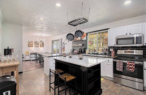Enjoy a stylish experience at this centrally-located place. It's one-of-a-kind multi-level home on a corner lot! This spacious retreat features a modern layout with updated kitchen and bathrooms. Enjoy SS appliances and a fully stocked kitchen, plus a complimentary coffee bar. The finished lower level boasts a wet bar and, stunning fireplace, arcade game, gym and extra sleeping area. Each bedroom has its own TV. With new furniture throughout, this home is perfect for your getaway! Welcome to Your Home Away from Home Step into a beautifully appointed living area, perfect for relaxing and entertaining. The floor plan seamlessly connects the living room, dining area, office space, and gourmet kitchen, creating a welcoming atmosphere for gatherings. Bedrooms- Bedroom 1: A luxurious king-size bed, flat-screen TV, and an en-suite full bathroom. Bedroom 2: A cozy queen-size bed, flat-screen TV. Bedrooms 3. Bedroom offers a comfortable queen-size bed Living Areas: Kitchen- Fully equipped for your culinary needs. There are two dining tables. Cooking Utensils: Pots, pans, bakeware, knives, cutting boards, and various cooking tools. Dining Equipment: Plates, bowls, cups, glasses, silverware, and serving dishes. Small Appliances: Coffee maker (Keurig and traditional pot), toaster, and microwave. Basic Pantry Items: Salt, pepper, sugar, oil, vinegar, and other common cooking staples. Note: While we provide the basics, you may want to supplement with your own favorite spices, condiments, or specialty ingredients. Living Area- There is a spacious living room and family room (in the lower level) with comfortable seating, large-screen TVs, and a cozy fireplace for relaxation. There is two futons in the living room, and there are two more futons in the family room, one bunk bed, and a sleeper. Play area and games- There are foosball, Arcade games, and card games. Gym- Full gym that includes treadmill, elliptical machine and statenorty bike. Laundry Room- In-unit laundry facilities with a washer and dryer are available for your convenience. Outdoor Features- Garage: Ample parking for two vehicles inside and there are driveway that fit 4 more cars Deck: Outdoor seating perfect for enjoying the fresh air. Back Patio: Enjoy outdoor grilling with the provided propane grill. Others- Wi-Fi: High-speed Wi-Fi internet access throughout the home. TV Cable: YouTub TV is included Access to the whole house