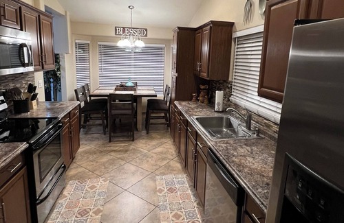 Stay comfortably in Tucson at this 4-bedroom house. The bedrooms feature 1 king bed, 1 queen bed, 1 twin bed, and 1 full bed, ensuring an excellent night's sleep for all guests. The property offers AC, heating, a washing machine, WiFi, an iron, and a hair dryer, providing enjoyable and convenient amenities. With 2 bathrooms equipped with hair dryer and showers, getting ready in the morning is a breeze. Enjoy outdoor TV’s and entertainment while swimming and relaxing by the pool! We look forward to hosting you at our place.
