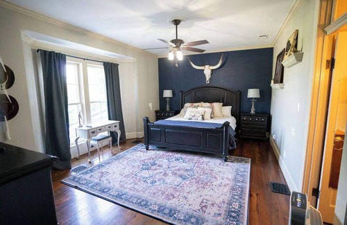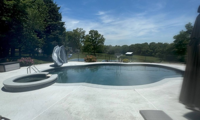 This 4-bedroom farmhouse is perfect for your escape to a Kentucky horse farm. Nestled in a peaceful setting, this adorable property offers a delightful retreat for guests. With 1 king bed, 2 queen beds, 1 futon, and 1 murphy bed, there's plenty of space for everyone to unwind and relax. The farmhouse boasts modern amenities such as heating, AC, and WiFi, and a pool ensuring a comfortable and enjoyable stay. Whether you're exploring the nearby attractions or simply taking in the serene surroundings, we hope you'll enjoy your stay at our charming farmhouse.