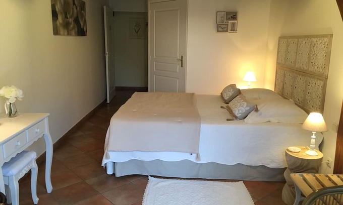 Two single-story guest rooms housed in a former farmhouse with discreet charm. Breakfast is served in the cozy dining room, under the arbor in the garden, or in the courtyard, where an old wine press stands. Free internet access. Extra bed (120 cm) or rollaway bed: €25. 15% off from the 3rd night. Room No. 1 is on the ground floor, housed in a former farmhouse with discreet charm (1 double bed 160 x 200 cm). Private bathroom and toilet. 15% off from the 3rd night. Pets allowed under certain conditions. Private access.