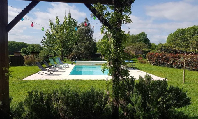 La Maison du Lac sits on the edge of a tiny hamlet nestled in the heart of chestnut country with dominant panoramic views over ancient woodland and Grand Jaques the tower of Chateau Montbrun which rises from the trees - the chateau to which Richard coeur de Lion was brought having been fatally wounded in Chalus. The countryside around here resonates with history and the local area is interlaced with many foot and cycle paths by which the area can be explored - the most interesting of which is surely the mown track leading through cornfields directly from the house to the Chateau bar/ restaurant which offers live music on Friday evenings. A fenced lake and orchard of châtaigniers belonging to the property, and which can be seen from the terrace and is only a 2 minute walk along the village road is accessible to our guests as a place to relax and forage (although fishing is not allowed). The local village, with basic provisions, is 2 mins away by car and there are several larger towns with supermarkets and restaurants within a ten minute drive. Should the table tennis, pool or many shelves of DVDs/books not prove entertainment enough many further activities such as go-karting ( the longest circuit in the Limousin) paintball, accro-bois and swimming lakes can be found within a 20 minute drive from the house and the Dordogne with all of it's own attractions is right on the doorstep. (NB. Please note that the pool is only heated from July to Mid September)