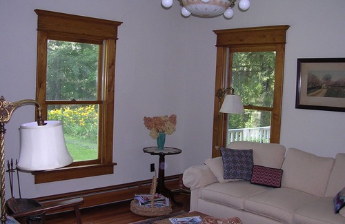 Less than two miles to Belleayre ski center and 15 minutes to Plattekill, our restored 5 bedroom farmhouse with pool, offers beautiful views of the mountains and is close to hiking, swimming as well as skiing. A wood burning stove is a focal point of the living room which is next to the large entrance sitting room. The living room has a big screen TV set up for streaming; high speed wifi throughout. The modern kitchen with a large dining area offers all appliances with a washer/dryer in the pantry. Four of the bedrooms are on the second floor, one has a bay window, one has a king, two have fulls and one has two twins or king. All have lovely views of the mountains. The fifth bedroom is on the first floor next to the kitchen. The house has two full bathrooms, a mudroom for ski storage and a front porch which looks out over the gardens and the mountains.