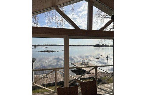 Enjoy a relaxing getaway in this charming house in Figeholm, Sweden, just a few meters from the sea. The property features a private jetty, perfect for fishing or simply taking in the breathtaking views. The house itself is cozy and well-equipped, with two bathrooms, a bright living room, and a bedroom with a double bed. The kitchen is fully stocked with appliances, including a fridge, microwave, and electric stove. The highlight of the property is the stunning glazed terrace with magnificent views of the surrounding landscape. After a day of exploring, unwind in the private sauna or hot tub. The property is ideal for families or couples looking for a peaceful retreat. Note: No pets are allowed inside the houses.