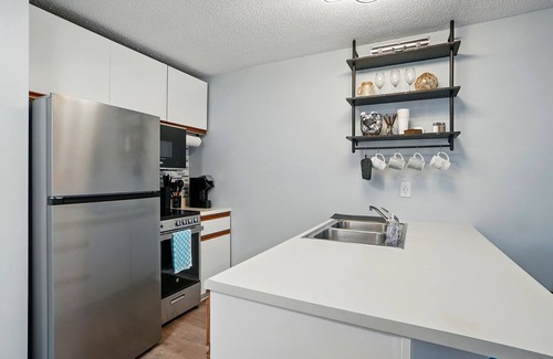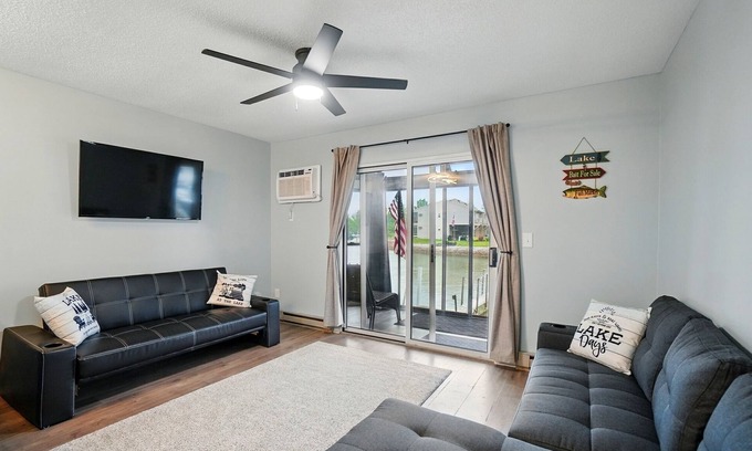 Newly renovated first floor ranch unit with 1 bedroom, 1 bath on the canal of Lake Erie. This condo will comfortably accommodate 4 adults with a queen-sized bed, a twin trundle in the bedroom, a full-sized sofa bed with memory foam topper (if needed} and futon in the living room.