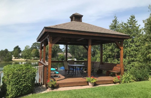 Rental includes WiFi/internet access, TV, board games, a wagon, propane BBQ, water slide, 2 docks plus a sunset 'wine' dock, fire pit (firewood provided), gazebo, children's playground, horseshoes, patio, and 180' of sandy beach. No pets or smoking allowed per association guidelines. The cottage has brand new furniture and other amenities. Washer and dryer in unit. All linen provided. Just bring your swimsuits and food.
