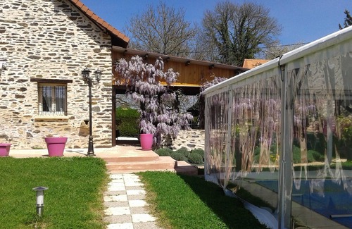 Property situated in a hamlet of the Périgord Vert. Rest and relaxation with family or friends. Fully equipped house. 1 covered terrace with summer kitchen and barbecue + 1 terrace with sitting room. Relaxation with a 30 degree heated indoor swimming pool, covered outdoor jacuzzi and sauna. Boules pitch with ability to play at night. Accepted animals. Easy access for disabled people. Car park.