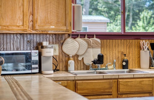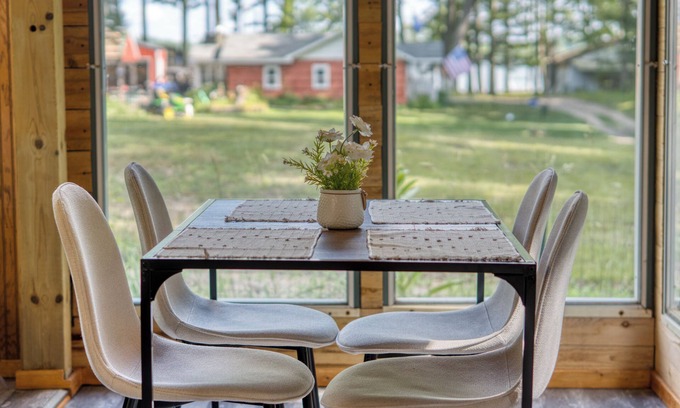 Welcome to The Green Cabin — perfect for a couple’s retreat or family getaway, with access to all-sports Round Lake. Just 25 mins to Ludington & the shores of Lake Michigan! Take a quick 3-minute stroll to our dock where you can kayak, swim or paddleboard. Back at the cottage, unwind in the backyard w/ a firepit & grill, or stream a movie in the massage chair. When it’s time to rest, there’s a queen in the bedroom, plus a pull-down sofa in the living room that’s just right for 1 or 2 kids.