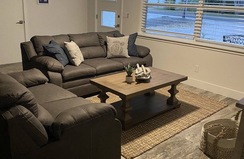 This beachside home is totally upgraded with modern, coastal design. The living room, eat in kitchen and newly remodeled kitchen are all connected. The kitchen has new appliances and everything you’ll need to entertain and cook. The refrigerator is quite big, so great for storage. The laundry room has a working washer and dryer. Also, a nice sink and cabinets galore. There are two bedrooms. One has a king bed w/ tv and one has a Queen. Two twin comfy beds are in the large entertainment room. The en’suite bathroom has an extra large walk in shower and two vanities. The other bathroom has a tub/shower combo. Open concept living room, kitchen and pool table room. Next to main bedroom with en’ suite there is an extra large space tha includes workspace area. Safe neighborhood and nice walking area along the intracoastal waters where dolphins play.