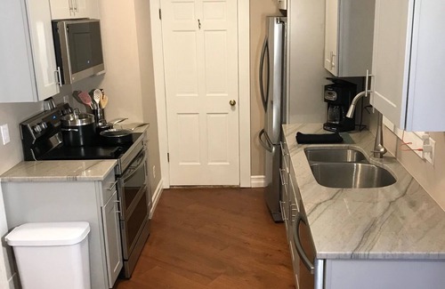 Orchard Park Village is waiting for you at this brilliant 2-bedroom apartment. With a king bed, full size bunk bed, and trundle bed, this tranquil space offers a soothing escape. Enjoy the cozy living room with a large couch for extra relaxation. We'll be available to answer any questions while you stay at our place.