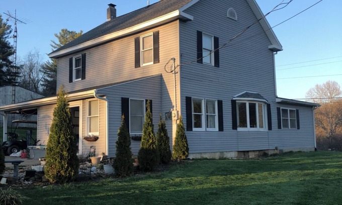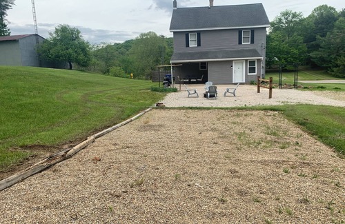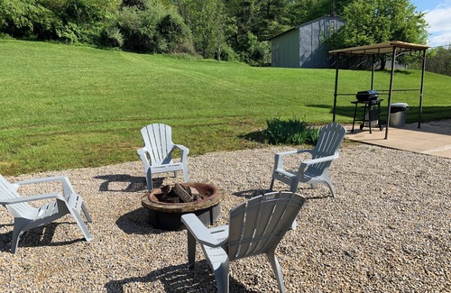 You will have this place to yourselves. This 1-bedroom house in Logan, sitting on 5 acres, is perfect for your escape to the country. With 1 queen bed, 1 full bed, and 1 futon (youth size). Our property offers amenities like a washer & dryer, AC, heating, WiFi, and more. Plenty of outdoor space with a dining table under a covered patio, a fire pit, large yard and woods to explore. Close to caves, lake, zipline, wineries, shopping, flea market and much more. Whether you're planning a long or short stay, our place is equipped to make your holiday amazing.