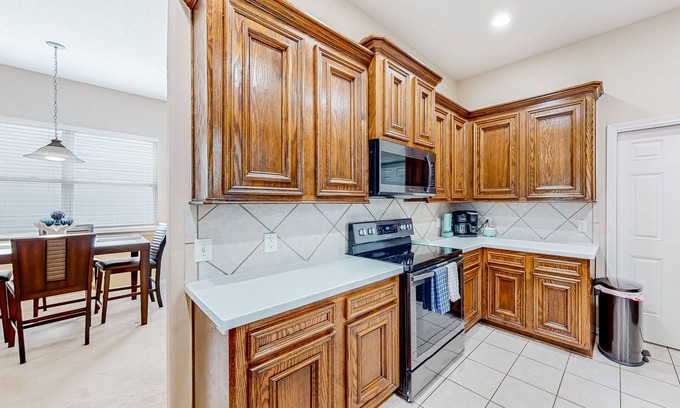 After a day full of adventure, head home where you can lounge in the cool air of the central air-conditioning. With an open-concept layout, the living room, kitchen, and dining area blend together in perfect unison. While the chef of your family shows off their culinary skills in the full kitchen, kick up your feet in the plush living room while streaming your favorite TV show or movie.