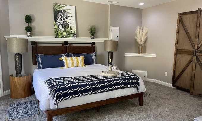 Nestled in nature's lap in an upscale neighborhood of Louisville. This tastefully decorated home features two bedrooms with king beds, kitchenette, large living room, patio, private hot tub, grill, fire pit, writing desk, 400 gbps free Wi-Fi and dedicated parking. Feels like you are out of the city but still so close to everything. Easy access to I-71, US-42 and I-265. 15 minutes to Churchill Downs, Downtown and distilleries. Ideal for couples, families and working professionals.