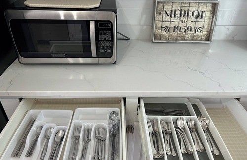 *Inviting living area with a flat-screen TV, Roku streaming devices and high-speed Wi-Fi.
