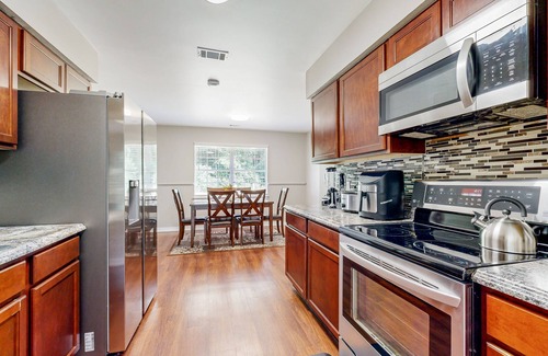 From a fully equipped kitchen with modern appliances to board games, this home has everything you need for a memorable trip. The spacious backyard is surrounded by lush greenery, offering the perfect setting for a serene night under the stars while the fire pit glows.