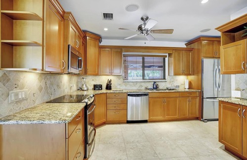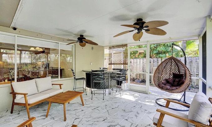 Quite and Cute home. Spacious 2 bedroom 2 bathroom fully stocked house with washer and Drier. Great screened in porch and back yard space. Just 0.7 mile from Pompano beach and Atlantic blvd restaurants and bars, great for a relaxing walk or an $8 uber ride. The home is just down the road from Houston's bar and restaurant.