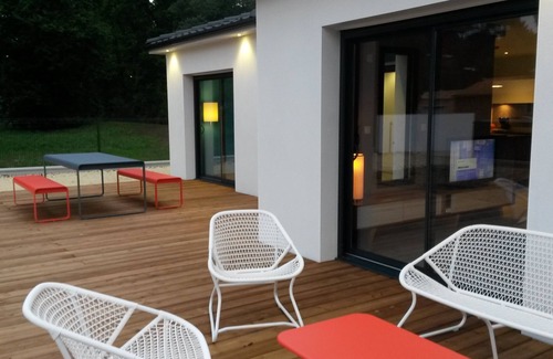Renovated house, very comfortable. It has a 100 m² terrace in a garden planted with tree. Tranquility is guaranteed. Nearby the markets and shops. Bike trails start 400 m away. They will lead you to the ocean, familial beaches and the wild coast