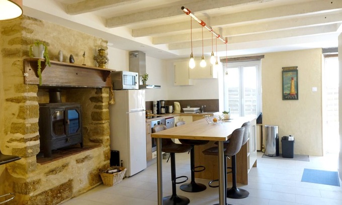 Charming house for 4 near town center is located in Sarzeau. Charming house for 4 near town center provides accommodation, featuring Laundry, TV, Security/Safety, among other amenities. This House features Laundry, TV, Security/Safety, to make your stay a comfortable one.